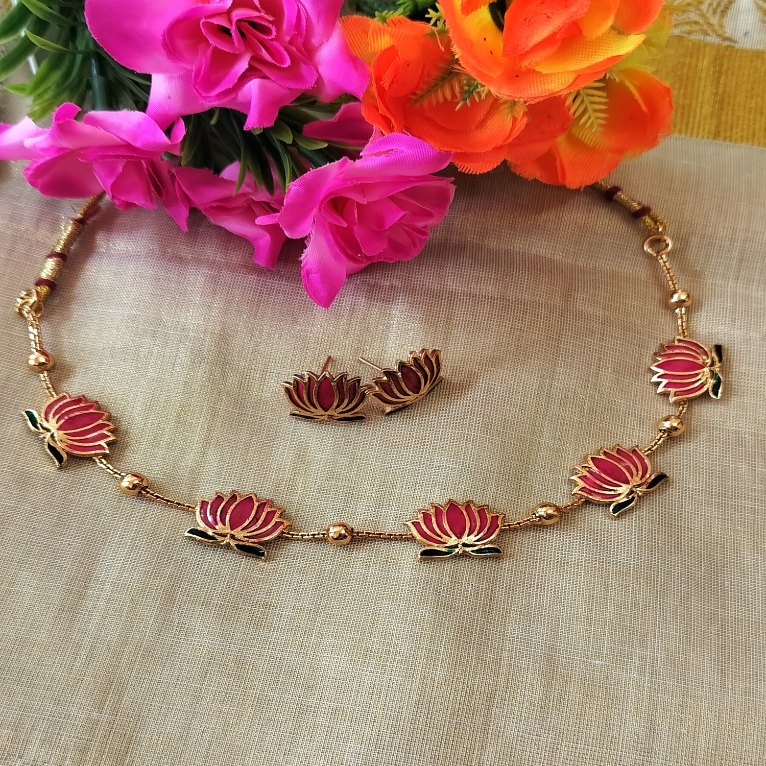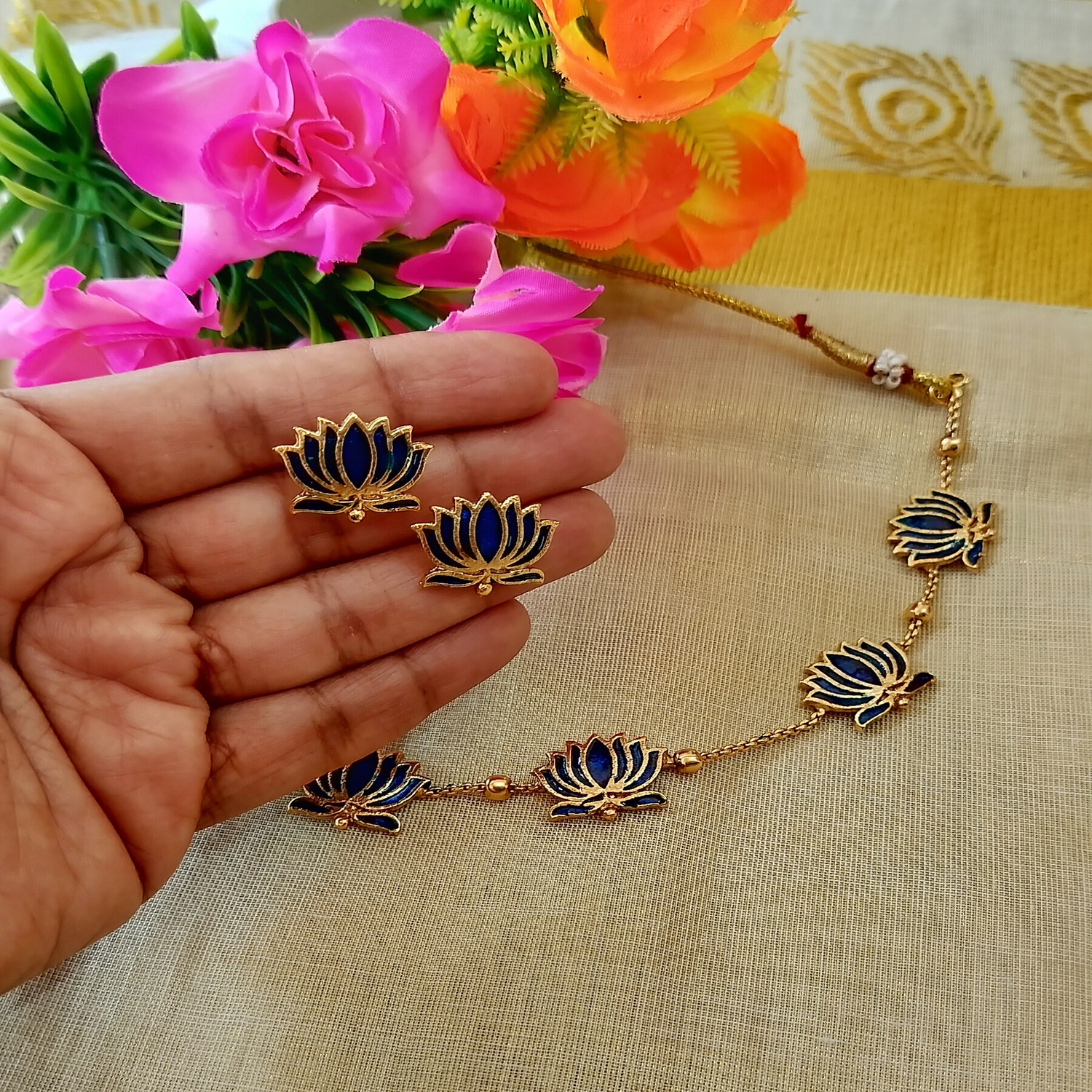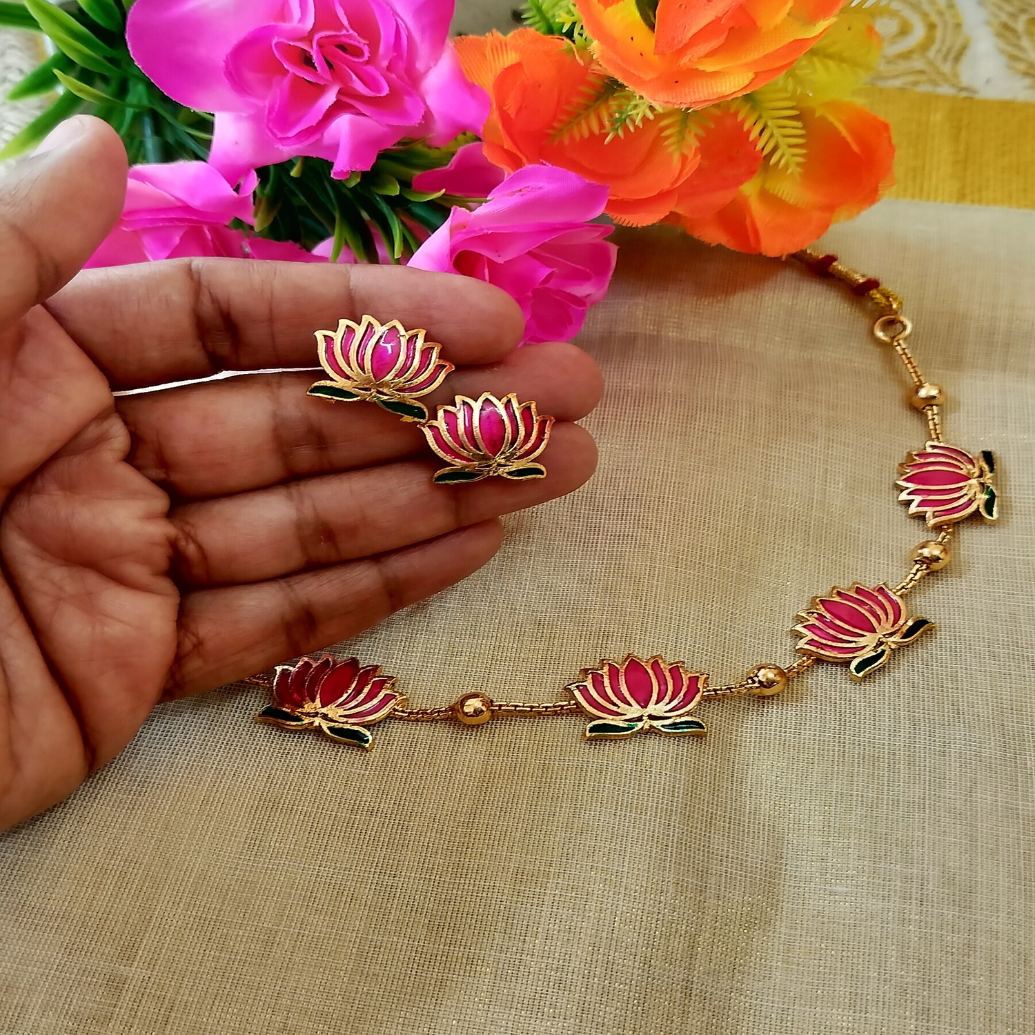 Manju Warrier inspired Lotus Necklace set (Lotus001)